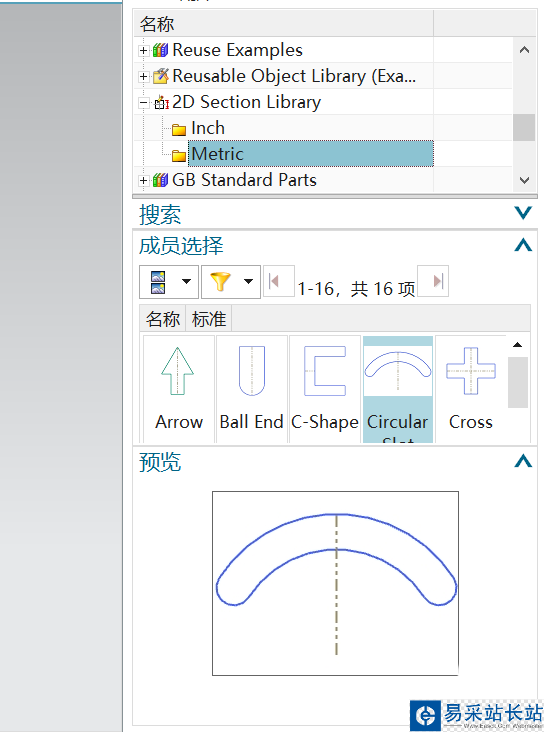 4、點開2D截面圖,可以看到有二個文件夾,分別存放著英制和公制的標準件。公制是我們常用的。
