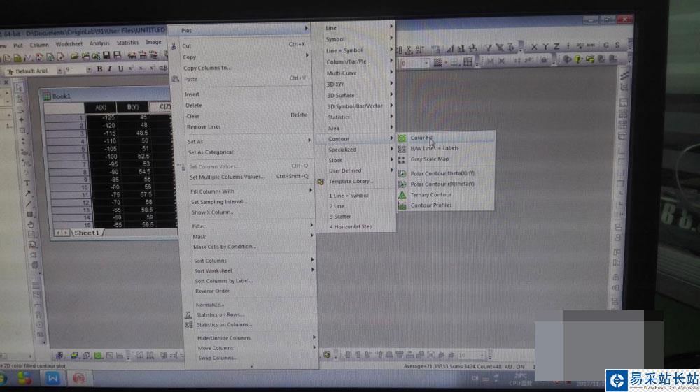 2、選中數(shù)據(jù),鼠標(biāo)右鍵選擇Plot---Contour,操作過程如下: