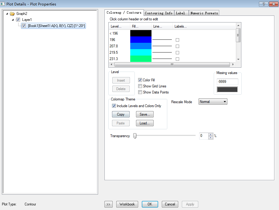 在origin9.1中繪制彩色等值線圖教程