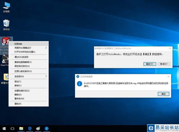 6、隨后提示,手工打開SolidWorks,此時切換到桌面,打開SolidWorks。