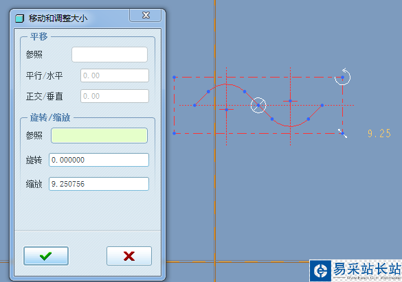 6、放置好的效果如下,可繼續通過尺寸驅動對波形進行調整。