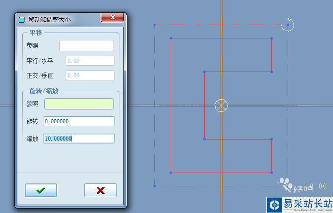 5、調整縮放比例為10或其它值,拖動中心點至原點,不進行旋轉。