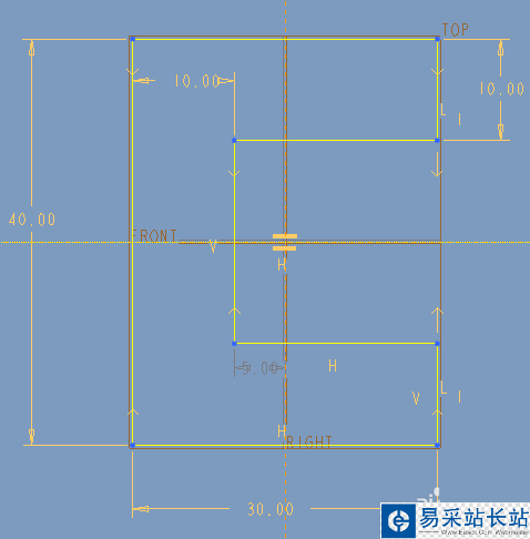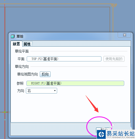 4、放置在草繪界面后的效果如下,會有一個默認尺寸和位置。