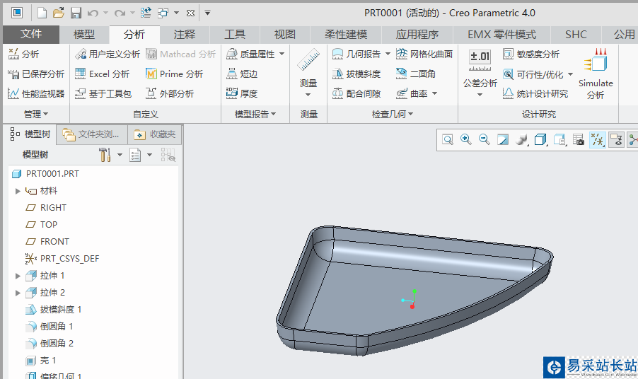 1、打開creo4.0軟件。打開產(chǎn)品模型。如下圖: