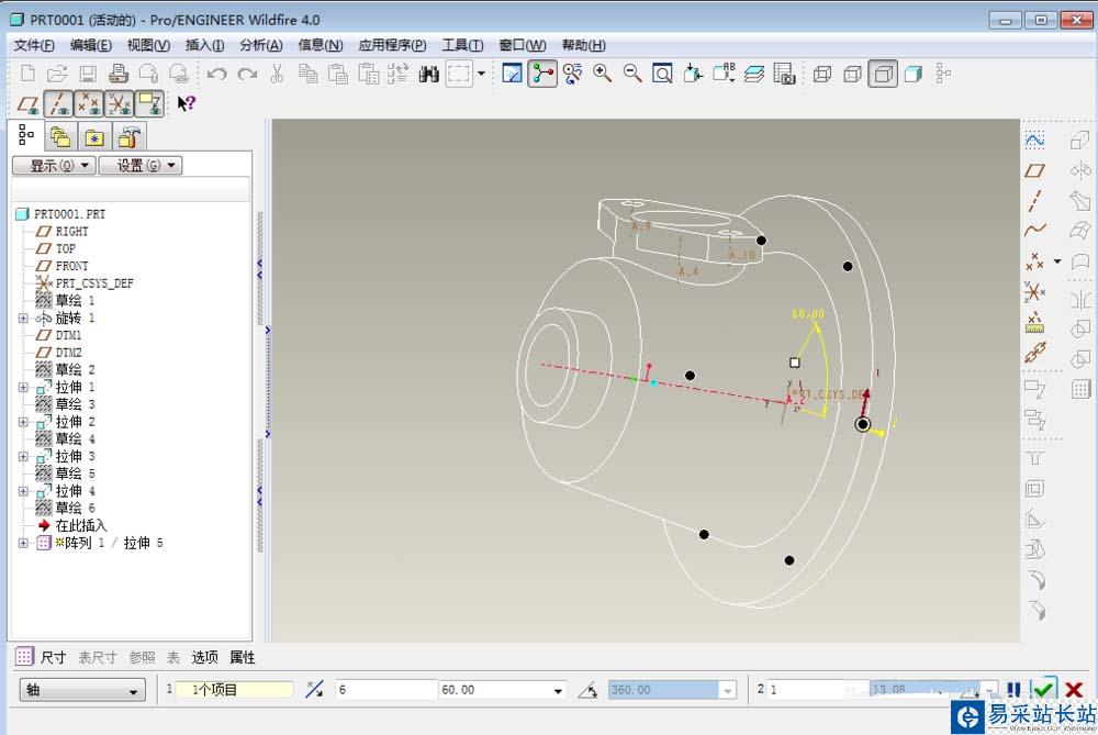 7、用陳列方式完成整周圓孔的制作。至此,二維圖就經三維的形式呈現在大家的面前了。