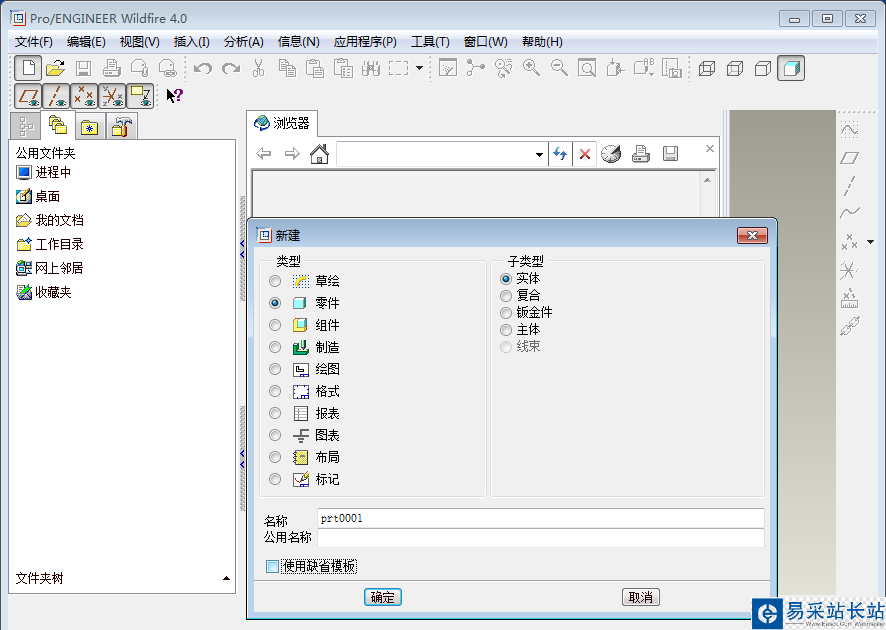 1、打開Proe 4.0 軟件,新建零件繪制。