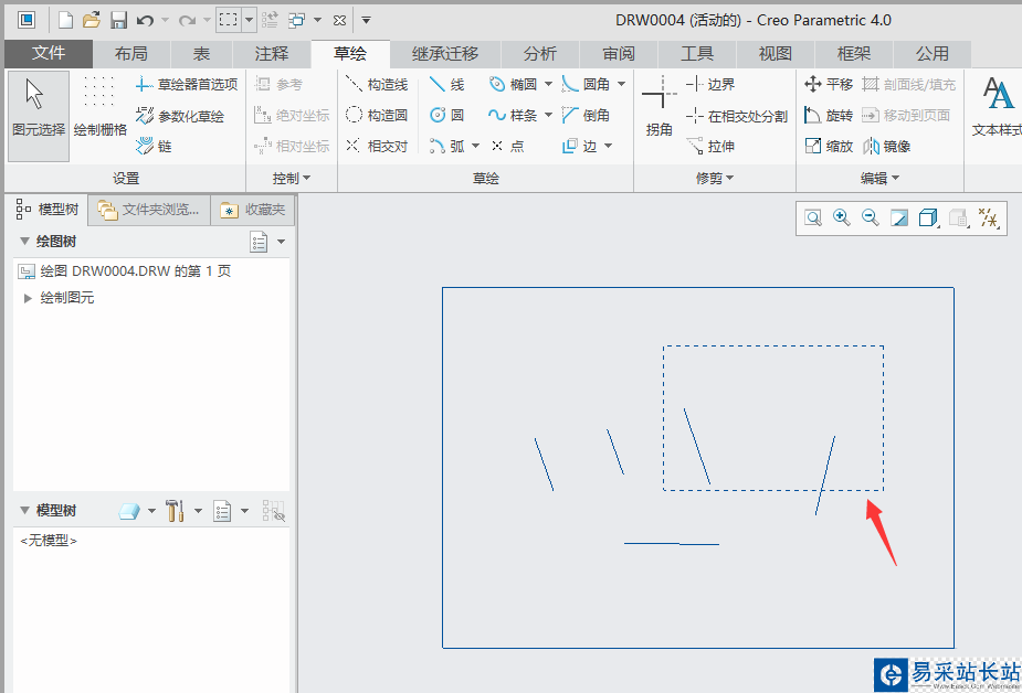 1、打開creo4.0軟件,新建一個工程圖文件,草繪幾條直線如下圖
