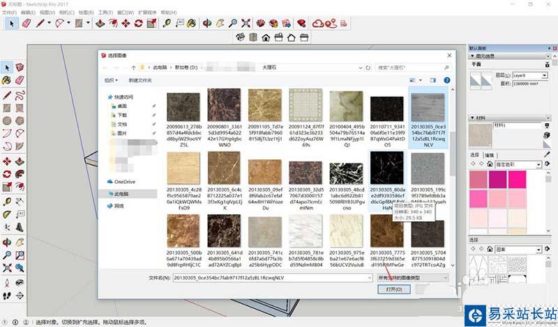 3、在創建材質....”對話框中,單擊“瀏覽材質圖像文件”,打開自己相應的材質庫,在立面挑選一個合適的材質,單擊“打開”。