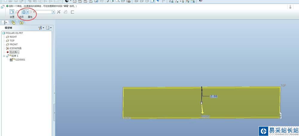 1、打開pro這個軟件,拉伸一個2毫米厚的薄板,薄板的長為125.66和寬為27.21。拉伸的草繪如下圖所示