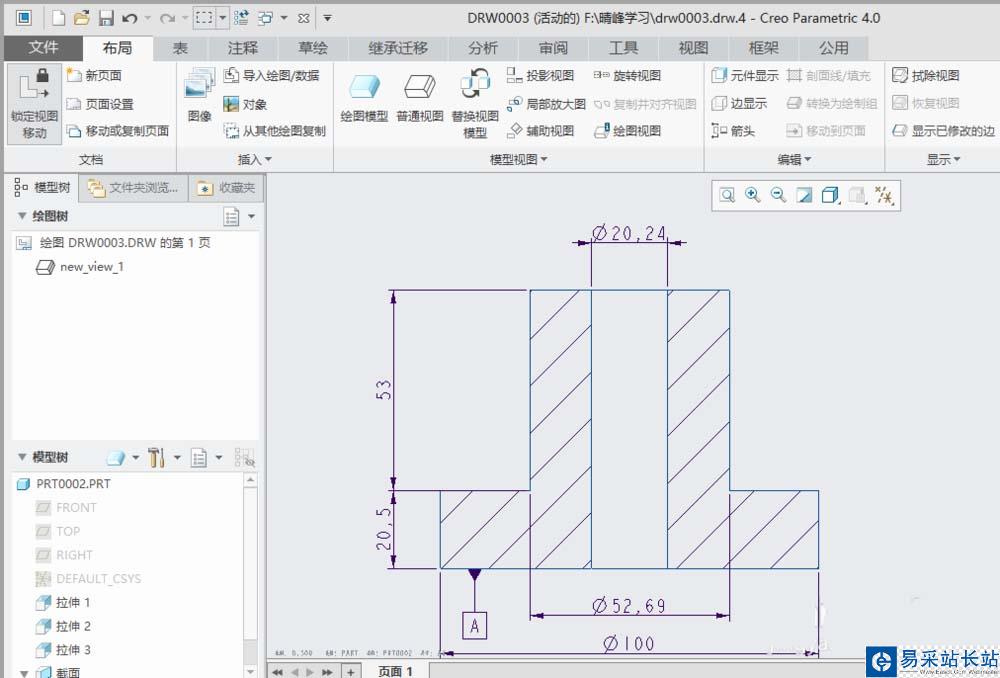 1、打開creo4.0軟件,打開一個工程圖文件。