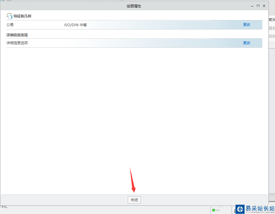 7、單擊“繪圖屬性”中的“關閉”。完成將尺寸小數點逗號改為句點。
