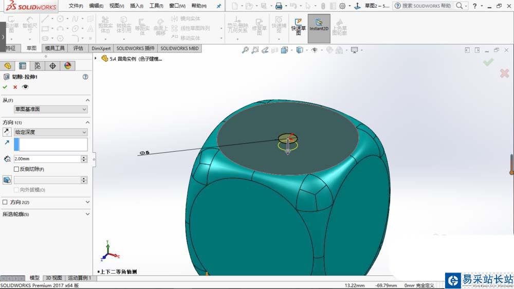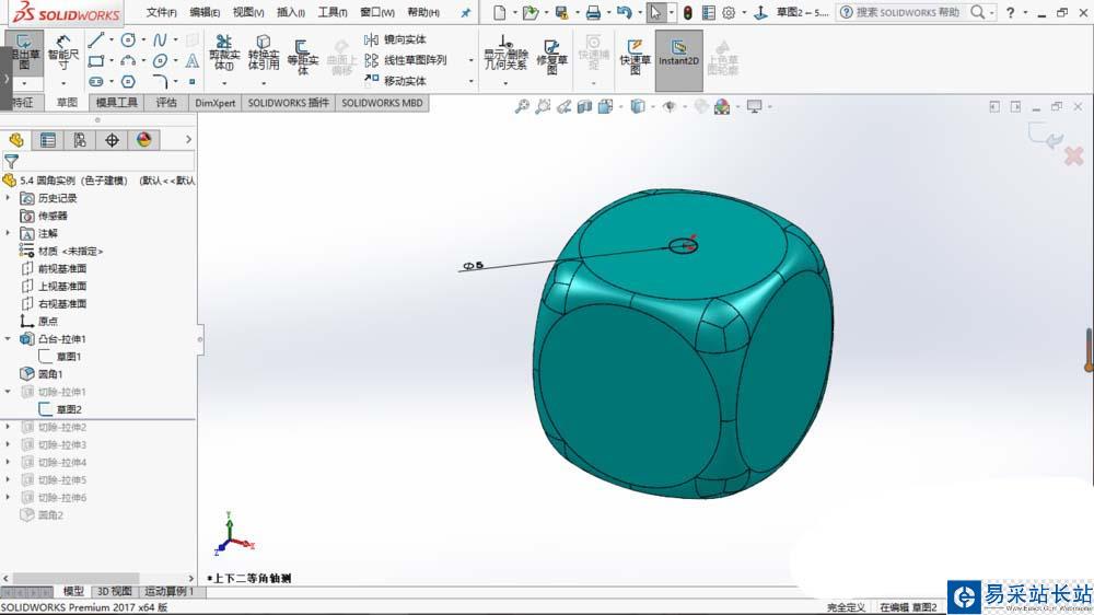 solidworks2017想要建模立體的骰子,也叫篩子,該怎么建模呢?下面我們就來看看詳細的教程。
