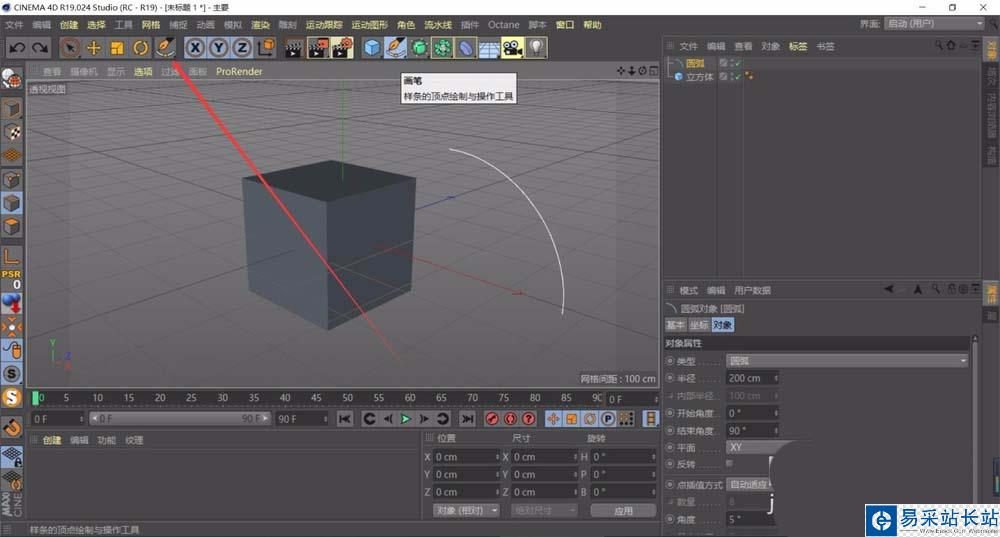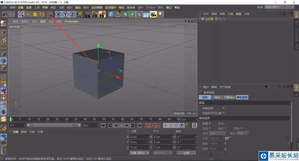 1、打開C4D R19 軟件默認當前的工具定位在移動工具上;