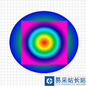 4、將矩形調整為正方形,選中正方形對象,修改填充色,也使用漸變色,如下圖所示: