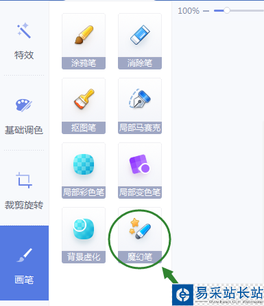 5、點擊頁面左側的美化編輯中的魔幻筆,開始使用魔幻筆功能。