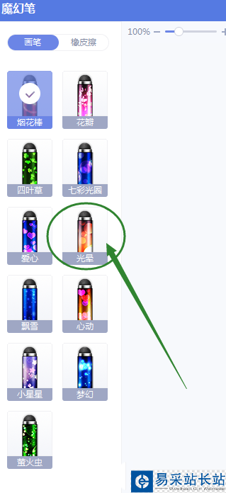 6、在頁面左側的魔幻筆各種模式中,選擇光暈模式。
