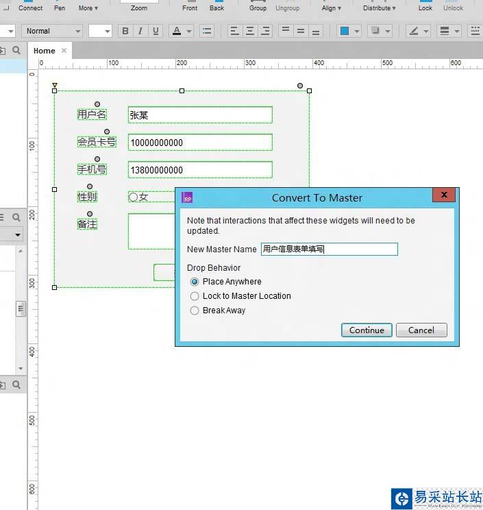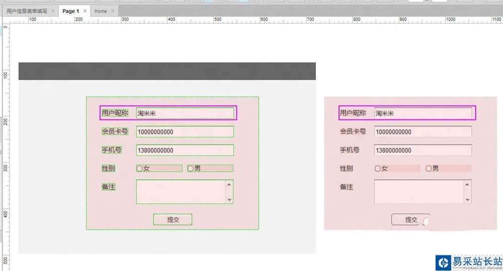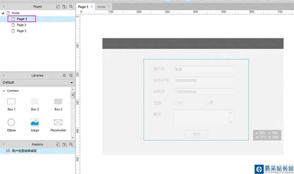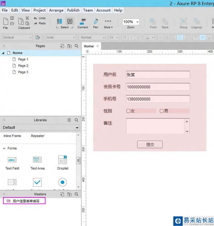 1、母版最佳使用場景是反復使用的組件,當然,還有一種情況是當使用Axure繪制流程圖時,如果涉及的頁面過多,可以按功能模塊生成母版,方便編輯和查看,這個不屬于這次的討論范圍,這里只說反復使用的母版,比如圖中的表單,我在多個頁面中都要使用到,那就非常適合使用母版的功能了
