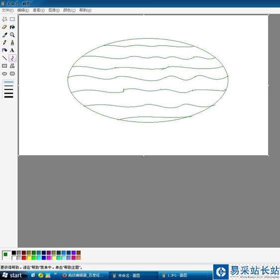 2、點擊曲線工具,畫曲線。這是西瓜的花紋。花紋較多,要有耐心