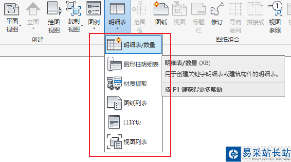 1、通過項目瀏覽器,下明細表/數量,右鍵新建明細表