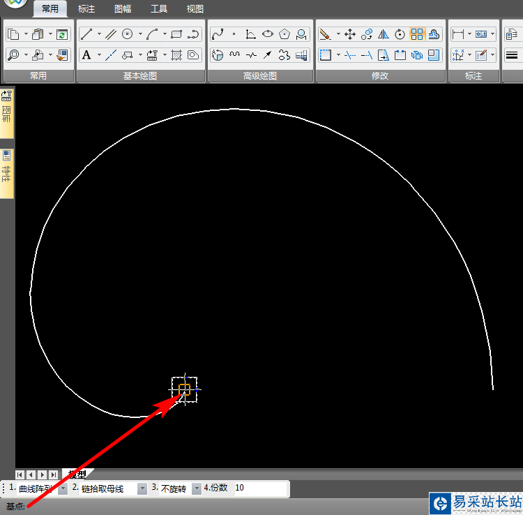 4、第2步選擇基點(diǎn),最好是選擇繪制陣列圖集的曲線端點(diǎn),防止出錯(cuò);