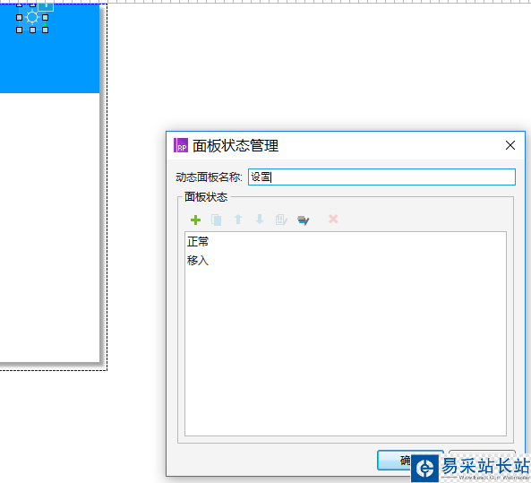 2、制作右上角設置小圖標交互樣式(以設置小圖標為例);新建設置動態面板,設置動態面板正常(鼠標移出)、移入時的狀態