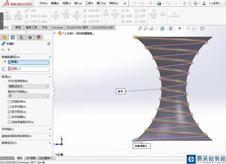 以上就是solidworks2017繪制異性彈簧的教程,希望大家喜歡,請繼續關注錯新站長站。