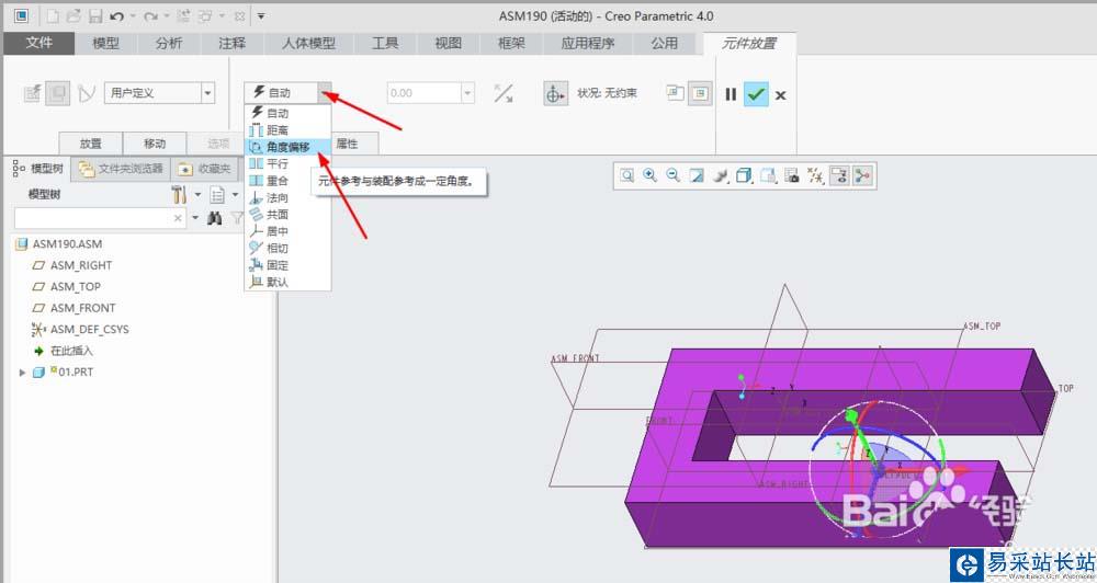 5、在“元件放置”操作板中把約束類型選擇“角度偏移”。
