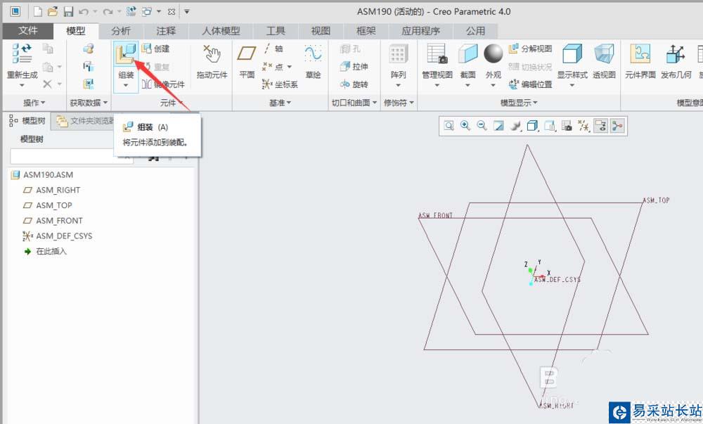2、單擊“模型”功能選項卡“件區(qū)”域中的“組裝”。彈出“打開”對話框。