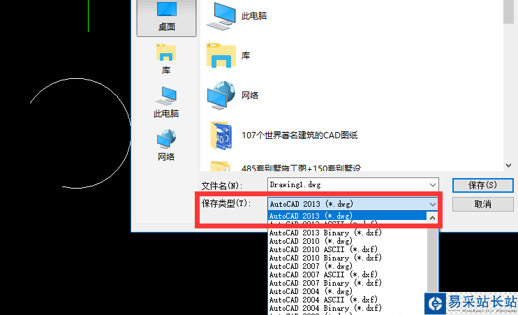 4、接下來在左側(cè)菜單欄中點(diǎn)擊“文件”,在文件的下拉欄中點(diǎn)擊另存為,在彈出的對(duì)話框中設(shè)置保存文件類型為dwg格式,最后點(diǎn)擊保存。