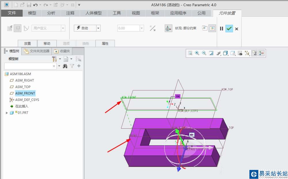 7、單擊”ASM_FRONT“和”FRONT“兩個基準面創建第二組約束。