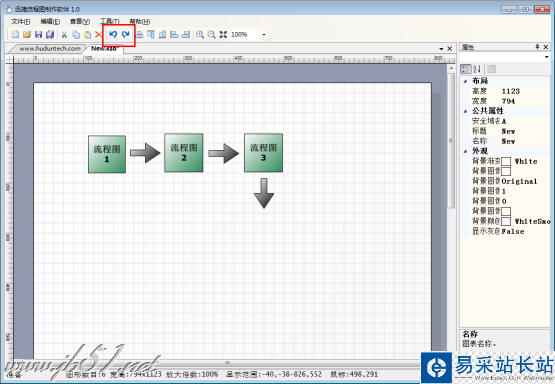 5、在繪制流程圖過程中,若是操作后想要將其撤銷,可以點(diǎn)擊菜單欄上的“撤銷上一次操作”按鈕,將上一次的操作撤銷。若是對撤銷操作后反悔了,可以點(diǎn)擊“重做”按鈕。