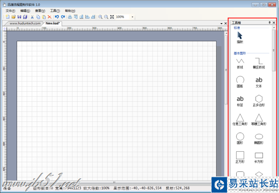 2、在軟件右側(cè)的“工具箱”中,選擇所需的素材,繪制流程圖。