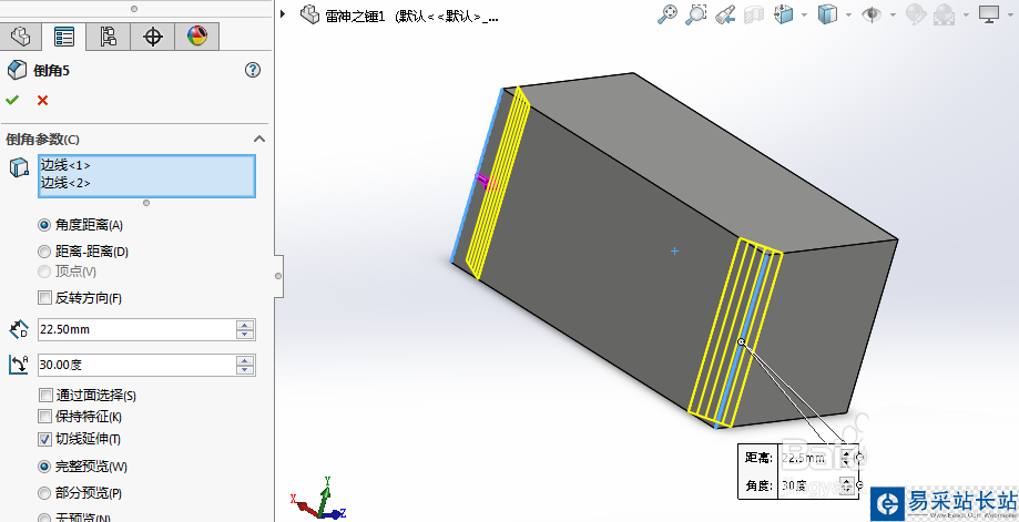 2、對錘子的每個邊都進行倒角處理。