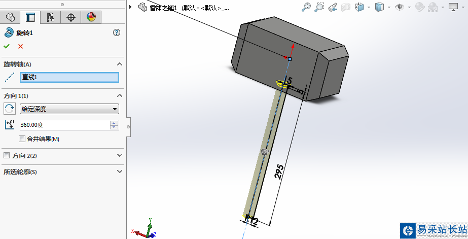 3、繪制草圖,旋轉凸臺,得到錘柄的模型。