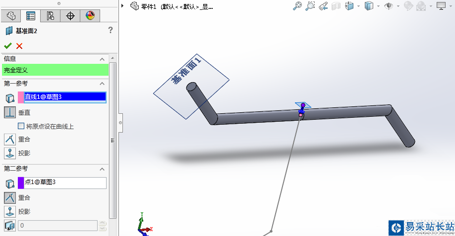 2、然后在一端的垂直面上建立基準面,并在該面上畫圓。