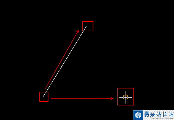 10、此時鼠標(biāo)變?yōu)殚偕》綁K+十字標(biāo)志符號,用這個符號的鼠標(biāo)依次從端點沿著兩個邊移動點擊。