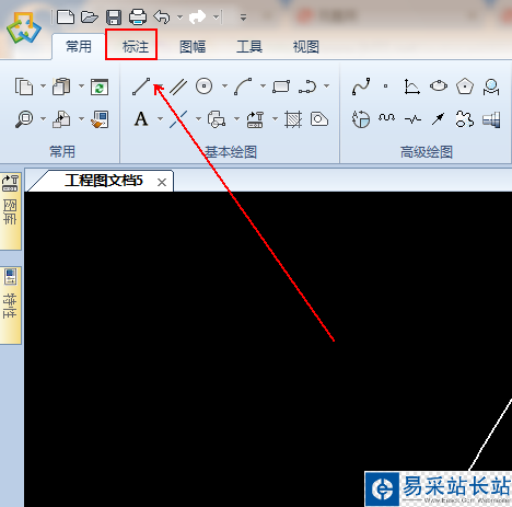 5、在上方工具欄上點擊【標(biāo)注】選項。
