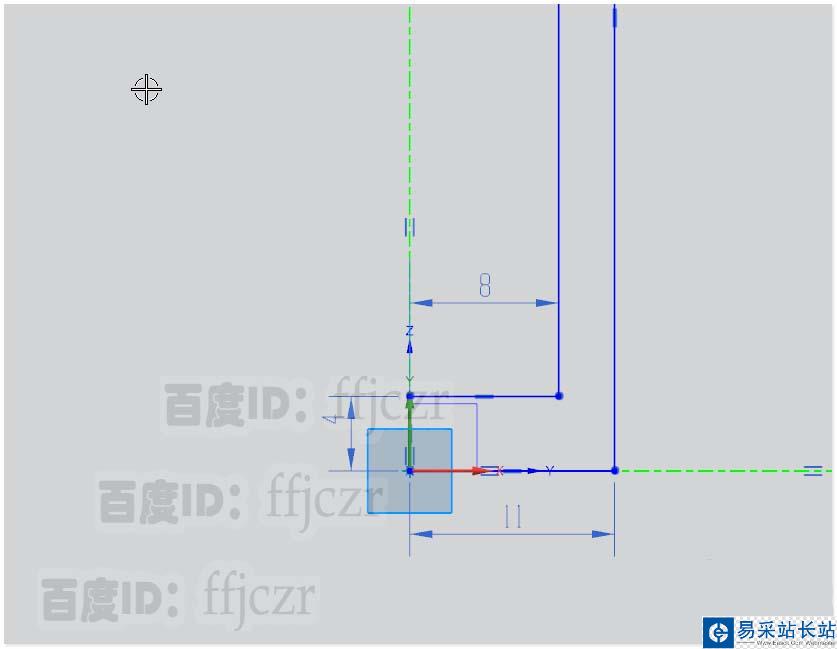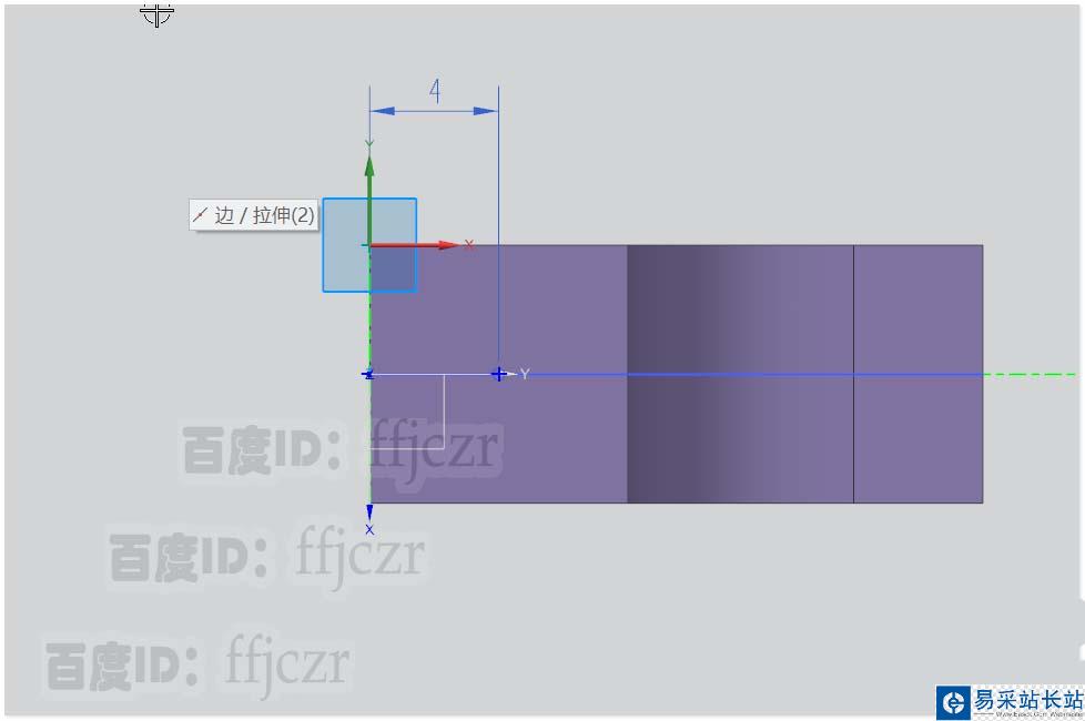 5、選用開孔命令,在底座開一個(gè)直徑為3的圓孔;孔在坐標(biāo)的Y軸上距離底座邊線為4。