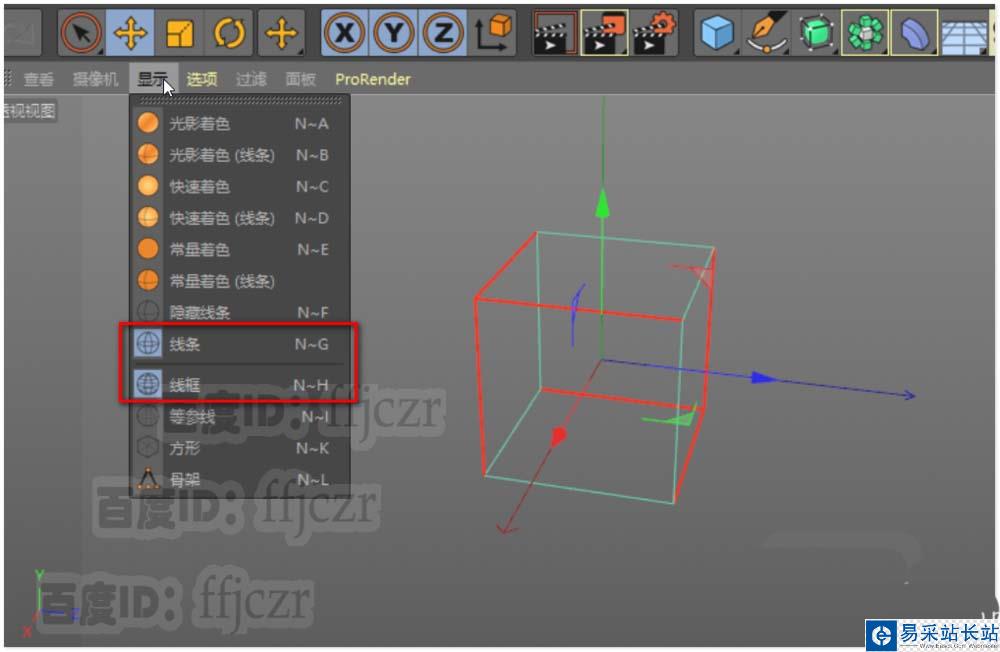 2、選擇顯示模式為線條/線框; 邊模式下,選擇多邊形對角的六條邊