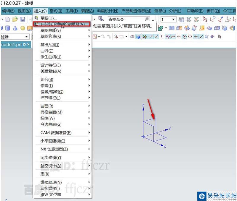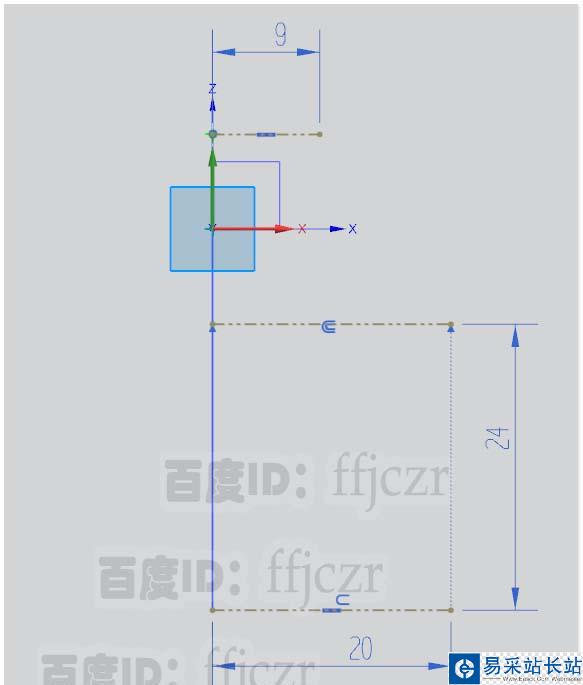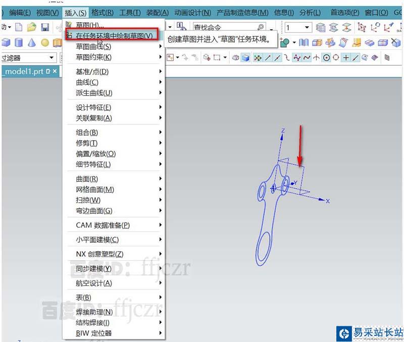 4、再次選用在任務環境繪草圖,以XZ面為草圖平面;根據上步的截面線繪出3 條參考線。