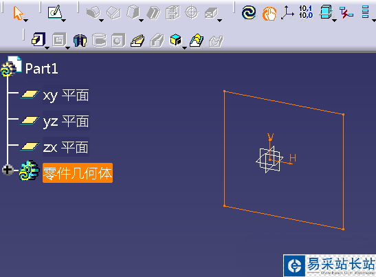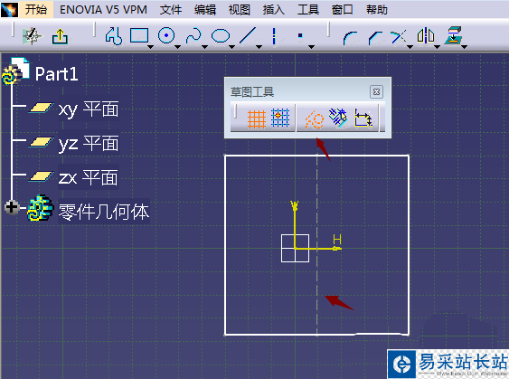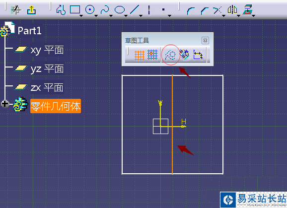 1、打開CATIA三維制圖軟件,點擊新建進入建模part模塊,依據鏈接進入草圖模式