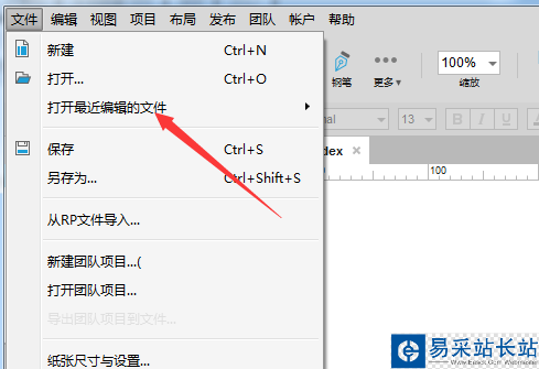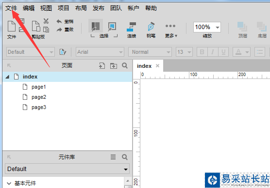 3、點擊了Axure8的菜單中的文件的菜單。