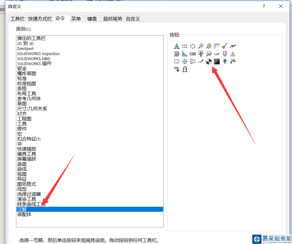5、然后選擇自定義,在自定義里面找到注解,注解下找到銷釘符號。