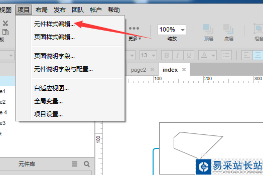 3、點擊了的項目的菜單之后,彈出了下拉菜單選中為元件樣式編輯的選項。