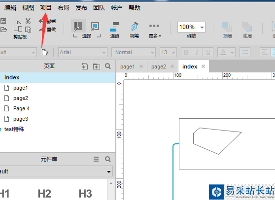 2、點擊了的Axure8的菜單中當中的菜單中的項目的菜單。