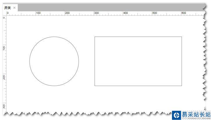 ”開關“按鍵比較簡單,如下圖,新建一個”圓形“及一個”矩形“
