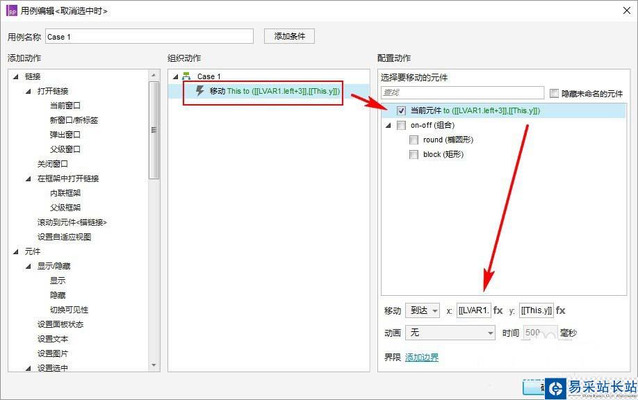 ”圓形:round“的”取消選中時“的交互動作:移動”圓形:round“到指定位置(X,Y)