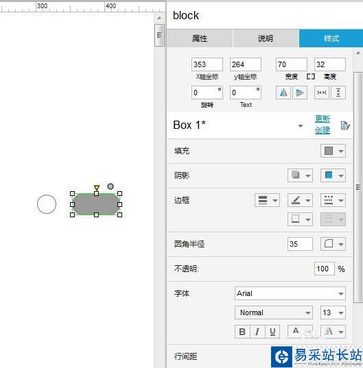 設置“元件:block”為局部變量LVAR1,所以X的值為[[LVAR1.right-This.width-3]]