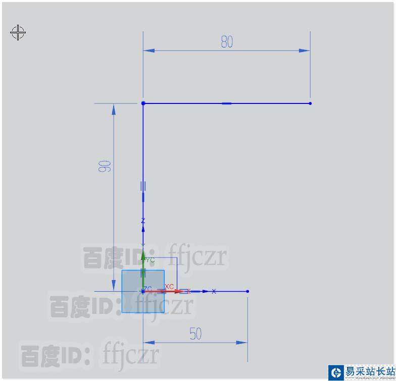1、選用輪廓彎邊命令,創建一個折彎件。XZ面為輪廓彎邊的截面草繪圖,用輪廓曲線繪出折彎件的截面線。在X軸上繪一條長50的直線,線在X軸上其左端點與坐標原點重合;從原點繪一條在Y軸上的直線,長90,從該直線的另一端點處繪一水平線,長為80,并與上一直線垂直;截面線繪制完成。