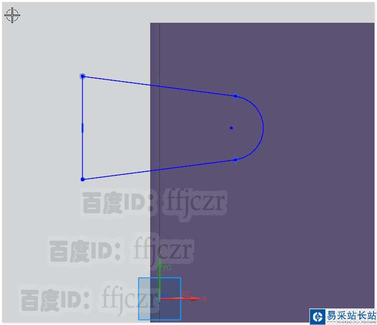 4、選用拉伸命令,草圖平面為新建的坐標XY面;在草圖中用輪廓線命令,在X軸正向繪出帶圓弧的輪廓。